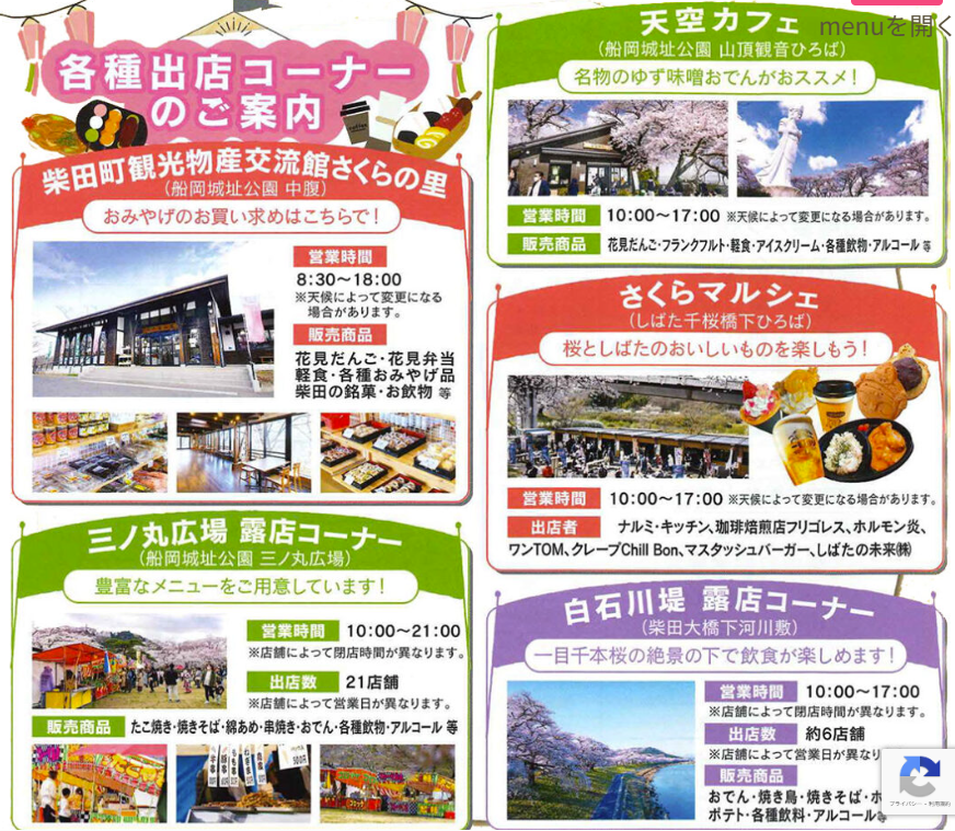 | イベント名 | しばた桜まつり(船岡城址公園/白石川堤周辺) |