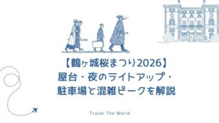 季節イベント情報 【鶴ヶ城桜まつり2026】屋台・夜のライトアップ・駐車場と混雑ピークを解説 鶴ヶ城さくらまつり2026を攻略!屋台の楽しみ方、夜桜ライトアップの時間、駐車場(台数・料金)、混雑ピークと回避術を表で整理。周辺観光スポットも一緒に紹介。 2026.02.15 季節イベント情報