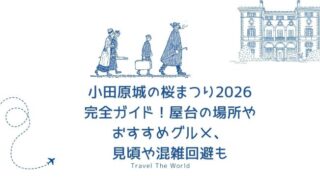 季節イベント情報 小田原城の桜まつり2026完全ガイド!屋台の場所やおすすめグルメ、見頃や混雑回避も 2026年の小田原城「桜まつり」を徹底解説!見頃・ライトアップ情報、屋台(出店)エリアの傾向、食べ歩きグルメ、混雑回避のコツ、周辺観光まで網羅。 2026.02.17 季節イベント情報