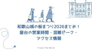 季節イベント情報 和歌山城の桜まつり2026まとめ!屋台の営業時間・混雑ピーク・アクセス情報 2026年「和歌山城公園 桜まつり」を徹底まとめ。屋台の営業時間目安、混雑ピークと回避術、電車・バス・車のアクセス、駐車場情報、周辺観光まで分かりやすく紹介。 2026.02.07 季節イベント情報