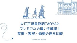 ホテル情報 大江戸温泉物語TAOYAとプレミアムの違いを解説!食事・客室・価格の差を比較 大江戸温泉物語の「TAOYA」と「Premium」は何が違う?食事(アルコール/ご当地/アイス)・ラウンジ・客室・価格帯を“滞在の体験”に落とし込み、失敗しない選び方まで比較解説します。 2026.01.16 ホテル情報