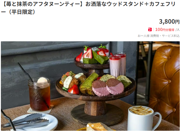 川崎市の中でも「武蔵小杉」エリアで探すなら、平日限定アフヌンが予約サイトに掲載されています(3,800円)。