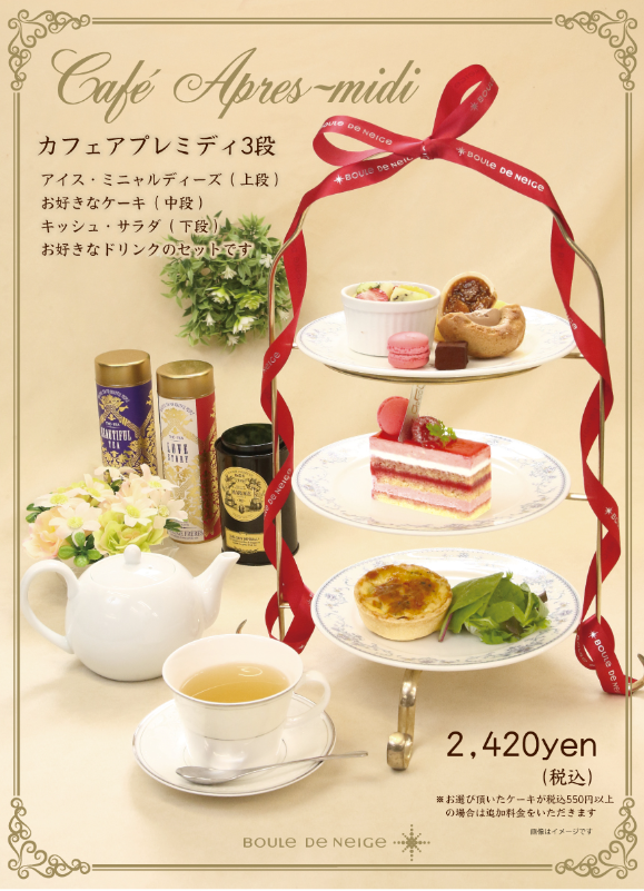 紹介されている3段セット「カフェアプレミディ3段」は2,420円