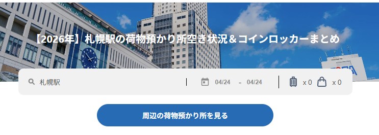 札幌観光協会は、札幌駅周辺観光では「ecbo cloak」などの手荷物預かりサービスを案内しており、駅周辺の預け場所をスマホで予約できると紹介しています。