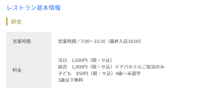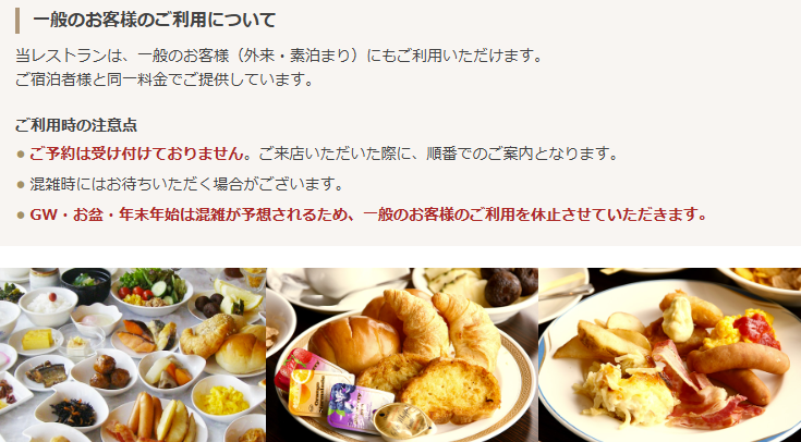 • 外来:フロントで朝食券販売の記載あり(ただし宿泊者優先等は要確認)